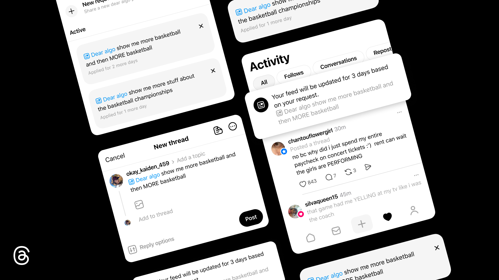 Mechanizm jest zaskakująco prosty. Wystarczy, że użytkownik opublikuje na Threads post zaczynający się od słów „Dear Algo” (dosłownie: „Drogi Algorytmie”), a następnie określi, czego chce widzieć więcej lub mniej w swoim feedzie. Przykład? „Dear Algo, pokaż mi więcej postów o podcastach” spowoduje, że przez kolejne trzy dni w strumieniu pojawi się więcej treści związanych z audycjami.