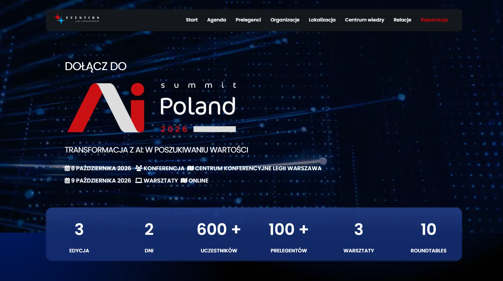 Tegoroczna edycja AI Summit Poland odbędzie się pod hasłem „Transformacja z AI: w poszukiwaniu wartości”. Dwudniowe wydarzenie rozpocznie się 8 października 2026 roku konferencją w prestiżowym Centrum Konferencyjnym Legii Warszawa przy ul. Łazienkowskiej 3. Drugiego dnia uczestnicy będą mogli wziąć udział w praktycznych warsztatach online.